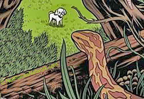 Visit Video Theater and meet "Pablo" And The Vets That Saved Him or meet this Giant Florida Rattlesnake that eats dogs. TheDogPress.com EST 2002 © Jun. 2022 https://www.thedogpress.com/Columns/carpet-snakes-risk-to-dogs-col22H063.asp SSI