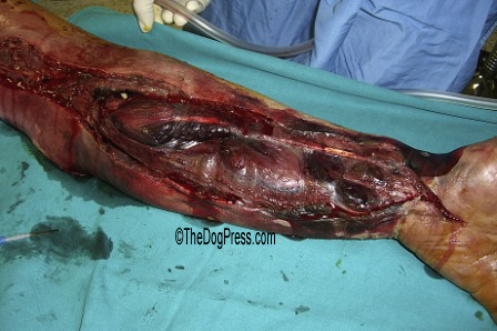Staphylococcus pseudintermedius necrotizing fasciitis in a dog