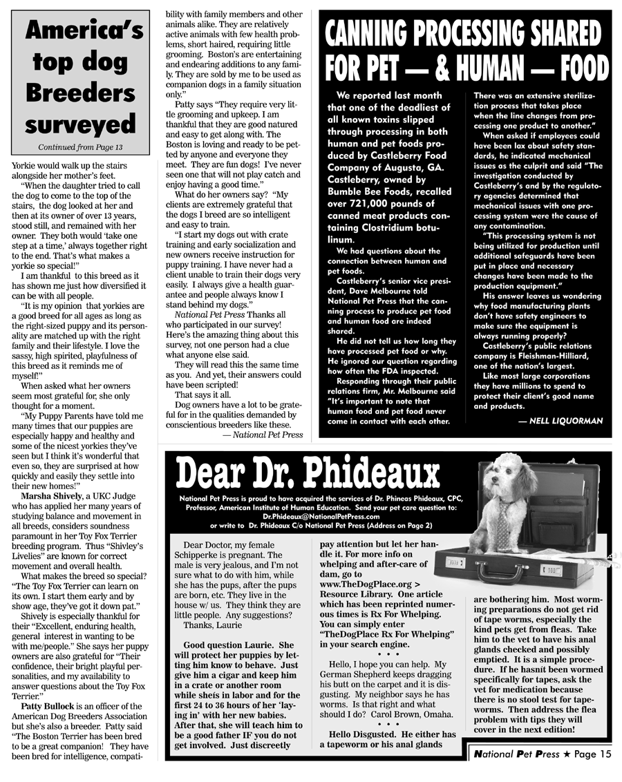 NPP - Canning Process Sharing Pet & Human Food, Ask Dr. PhideauxThe First National Newspaper For
