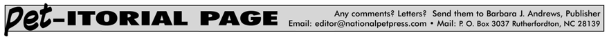 *We trust you found this helpful. National Pet Press is "take-with" news and entertainment for owners who care about Wellbred Companion Animals.
